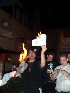 Highly flammable: the traditional burning copies of Eldarad and Daughters of Darkness at Convulsion C2K, July 2000 (photos by Neil Smith)